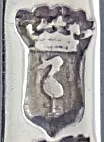 Jaarletter V Den Haag van 1791 gevonden op een zilveren lepel gemaakt door Andries van de Vijver, Den Haag.